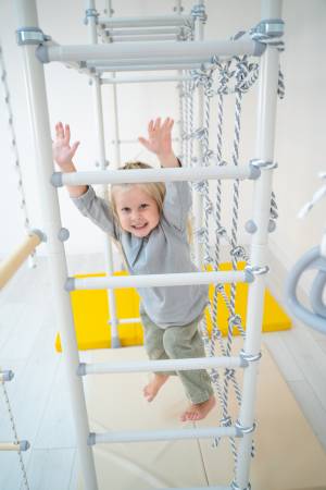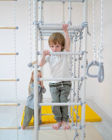 โ Includes monkey bars, rope ladder, climbing rope, gymnastics rings, trapeze bar, and chin-up bar