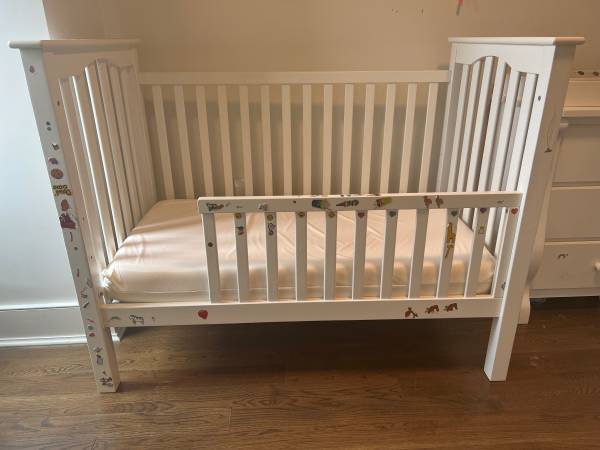 Solid and stylish Pottery Barn Kids Kendall Crib that converts into a toddler bed — the conversion rail is included.