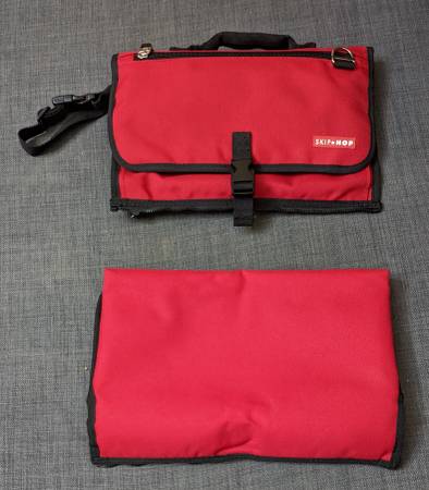 This listing is for one Skip Hop Pronto changing station portable changing pad/carry case, in red. From popular baby brand Skip Hop, this is great for on-the-go parents – allows you to keep everything you need for a quick diaper change right in one compact package! The ultra-convenient clutch design means you can drop the changing station into your diaper bag or purse, wear it on your wrist, or clip it onto your stroller. Features a wipe-clean, extra-wide changing pad with fold-out “wings” to better protect and cushion baby, and a built-in pillow to keep baby comfortable. Large mesh pocket holds diapers/pull-ups as well as diaper creams or other essentials, and the internal zippered pocket is perfect for holding your wipes or a spare set of clothing. Also features an external front zippered pocket, perfect for your keys, cell phone or other personal items. As a bonus, the changing pad zips off from the clutch, so you can use both items independently! See link for additional photos and info: https://www.amazon.com/Skip-Hop-Signature-Portable-Cushioned/dp/B00B7XUVOE