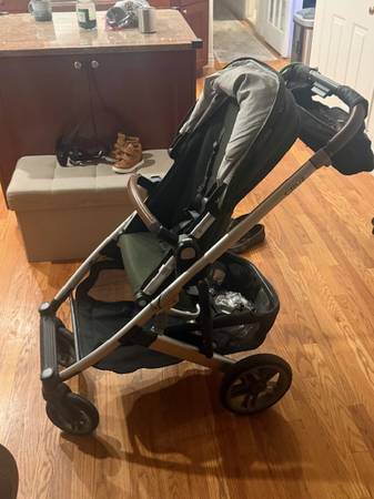 For Sale, UppaBaby Cruz 2 (Green) Stroller which we purchased in 2021 and used for about 2 years. In really good conditions. No visual or mechanical defects (see pics). We also have an uppababy carrier bag for the plane as well as a cup holder and rain cover for the sroller. All of this cost around $800 at the time. Hoping it goes to a newly expecting family in the neighborhood.
