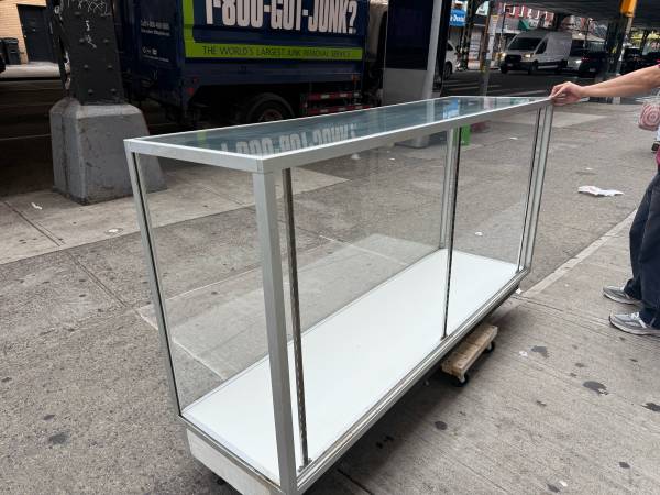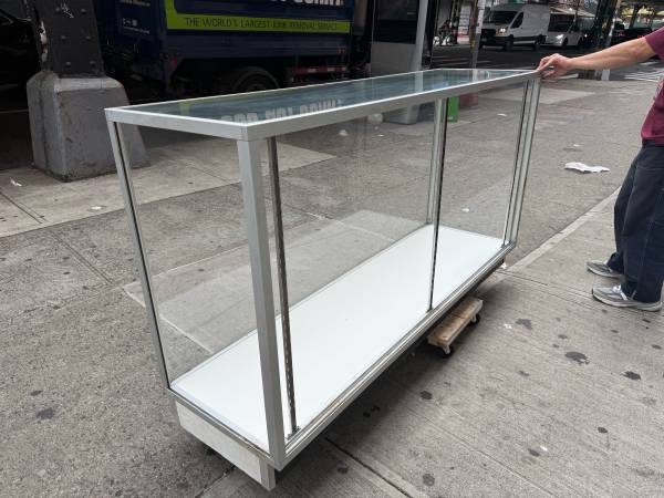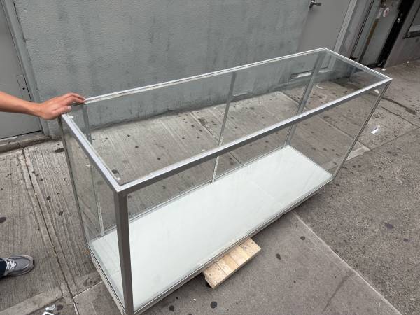 Glass retail display case in very good condition. Missing the sliding glass doors and one of the side panels, but otherwise all of the glass is in perfect condition.