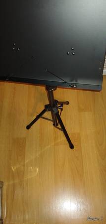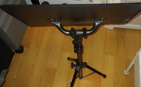 The Musician's Gear stand is a sturdy tripod stand made of metal, suitable for holding music books or laptops while performing or practicing. The sleek black color adds a professional touch to any musician's setup. With only one tier, this stand is lightweight at 10 lbs making it convenient to transport and easy to maneuver during performances. Whether you're a beginner or a seasoned musician, this stand is a practical and reliable accessory to enhance your performance.