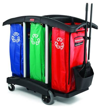 Heavy-duty Rubbermaid triple capacity janitor/utility cart.2x available if needed, the price listed is for one cart. Great for commercial cleaning, offices, schools, or industrial use. Designed to hold multiple buckets, tools, and trash bags. Durable wheels, solid frame, and convenient storage compartments.