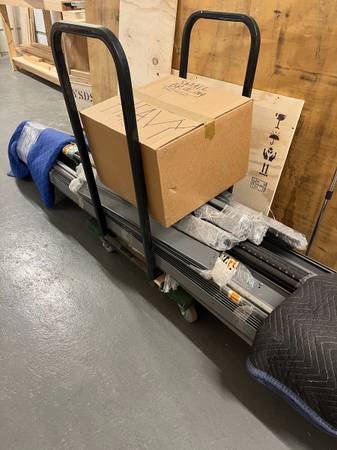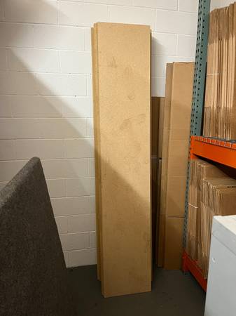 Various warehouse items for sale including... - ULINE industrial steel shelving (96"L x 18"D) (x6) ($200 for all--wood shelving inserts included) - Industrial fans (x2) ($50 for two) - ULINE janitor...