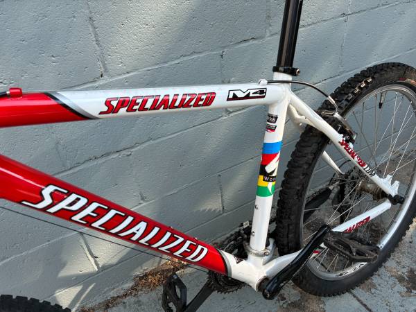2001 Specialized S-Works M4 medium-sized frame hardtail with 2 wheelsets (1set for singletrack/crosscountry, 1 set for the street/light trails).