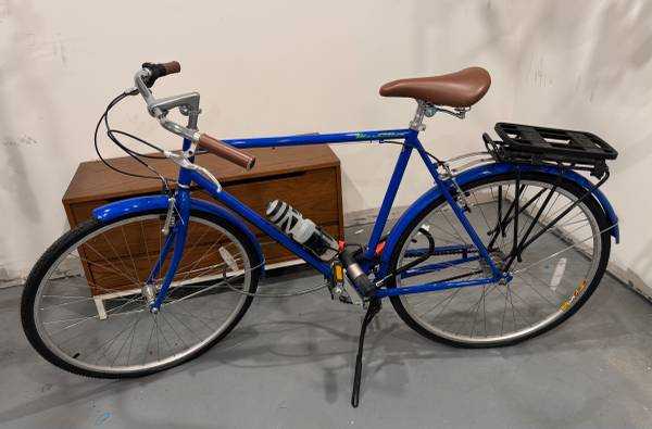 Selling my Manhattan Cruiser Men’s bike—blue, 23” steel frame, in great shape. 3 speeds for easy city riding Comfortable leather seat Rear rack for carrying groceries, bags, or kid's bike seat Comes...