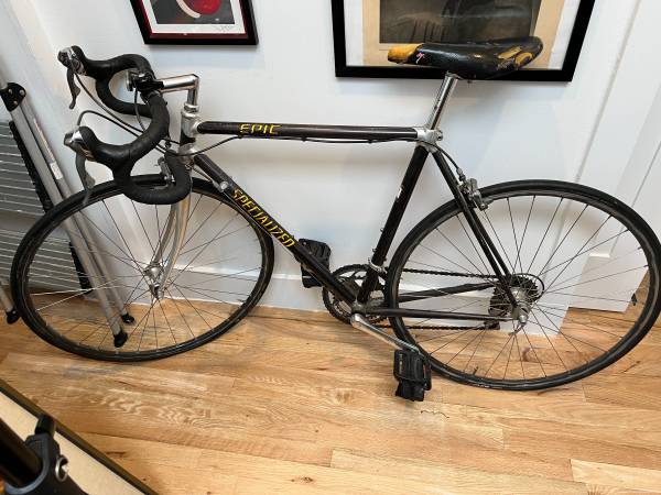 Really cool Specialized Epic, collector's piece from 1990s, ‘93-‘94, and I always got lots of comments on it from other cyclists. Carbon fiber frame and Shimano 600 components.