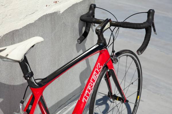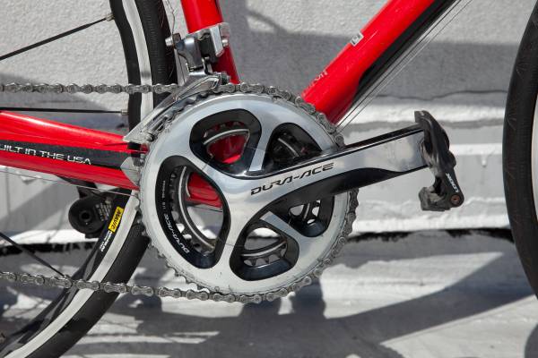 Year 2008 Frame Tubing Material Trek OCLV Red carbon, size 52cm Cassette Shimano Dura-Ace, 10-speed: 11-25 Shift Levers Shimano Dura-Ace 2x10 Wheels Hubs Mavic Ksyrium See Rims/Wheels Mavic Ksyrium...