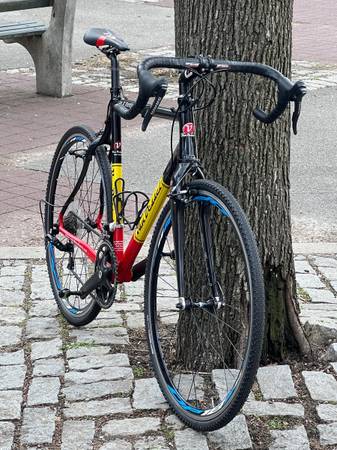 Absolutely mint like out of a time capsule! As if never ridden. From around 2010, this bike is the real racing deal. Super high end SRAM components. Brake lever shifters. The original owner decked this out with nothing but the best custom parts. Also has a Fizik lightweight seat. Weighing in at a total of just 20 pounds it is FAST! Especially on the flat roadways of the City. And so easily lifts over your shoulder when you need to cart it up your 5 floor walk up. Measures 24.5” from the crank hub to the top of the seat post. 700C knobby hybrid tires. Handles like a dream.