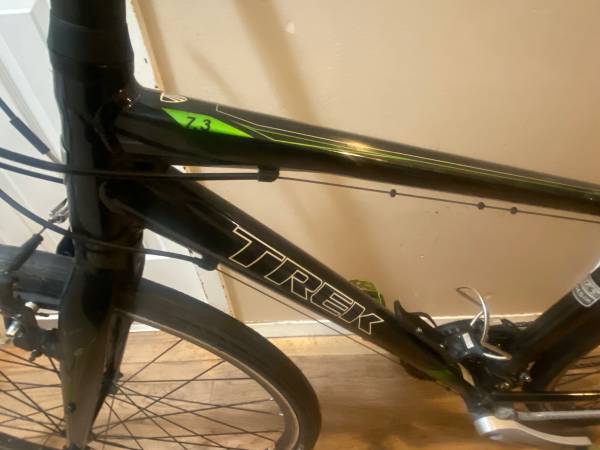 Selling 24 Speed TREK 7.3 FX Road Bicycle. 700 x 32 C tires, 18 inch frame, trigger shifters, water bottle holder, under the seat compartment bag. If weight of the bike is a major concern-then this bike is for you. Very light weight bike.