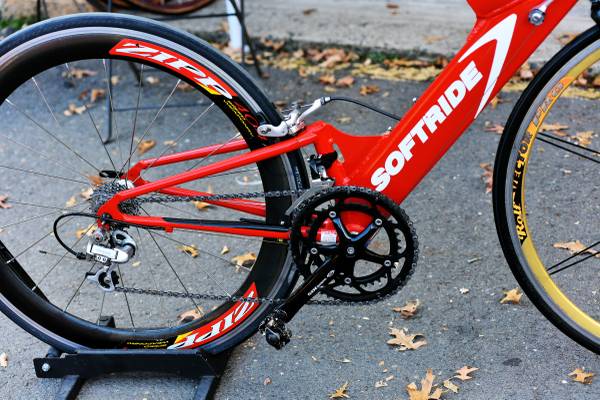 Excellent Softride Classic Qualifier 700. Made in USA. Aluminum frame. Carbon fiber fork. Campagnolo Avanti rear derailleur. Shimano 105 front derailleur. Shimano 105 crankset. Suntour Accushift...