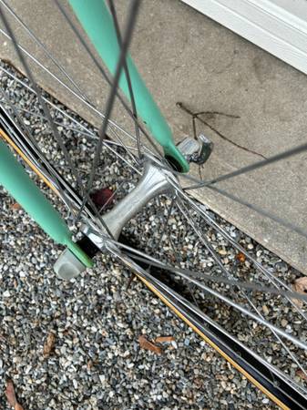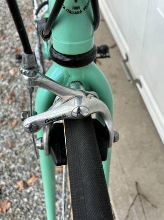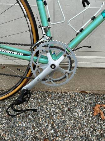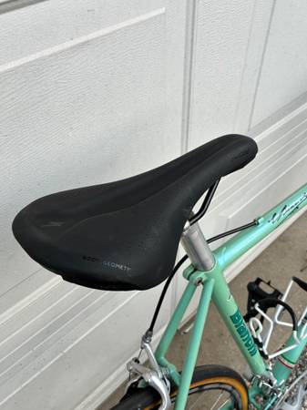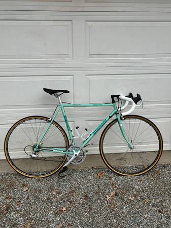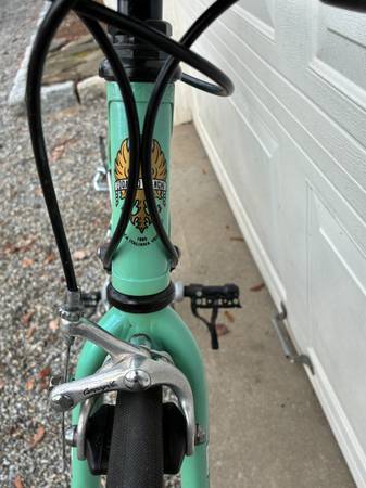 This bike should fit riders from 5’7 to around 5”10. The bike was made in Italy, and has a great “signature edition” Bianchi Celeste Green frame in essentially unmarked, like new, condition.