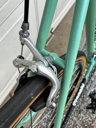 The bike has a full Campagnolo build….. brakes, shifters, crankset, derailleurs and hubs. It has NEW bar tape and saddle, and has an Italian ITM stem and bars, as well as an Ambroso Elite wheelset with Campy hubs and skewers and Specialized Turbo Cotton tires with many miles left to ride…..a true Italian classic in extremely hard to find condition!