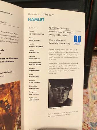 For the theatre lover, or for that friend that loves theatre. Wonderful reading. With Kenneth Branagh 1992-93 HAMLET piece.