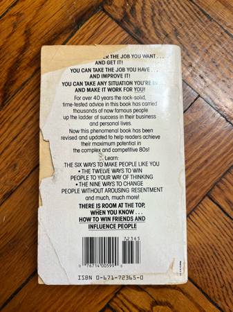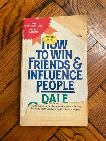 How To Win Friends and Influence People by Dale Carnegie Paperback in fair condition, wear and tear mainly on the front and back. Pick up in Bed Stuy