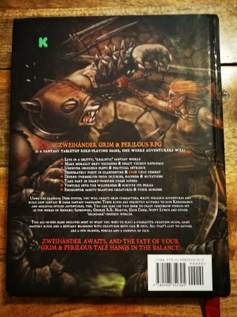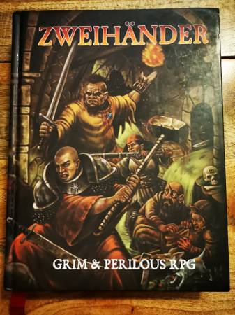 Zweihander Grim & Perilous RPG hardcover starter book. This is the first edition Kickstarter version, with alternate cover art. For full details, see: