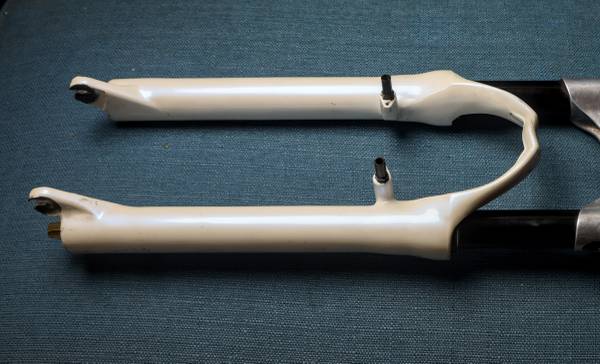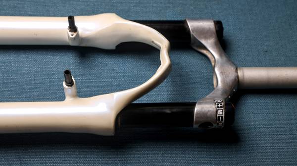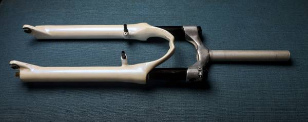High quality, lightweight 26er fork for mountain bikes. Air suspension. Pulled from a high end early 2000s MTB. Working very well, moves freely and lock out works flawlessly. The stickers were removed from the front. Fork is v-brake, cantilever brake and disc brake compatible.