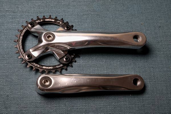 Selling a square taper Shimano crankset. The crank was polished silver and is in perfect unused condition. Comes with pictured 1x narrow-wide chainring installed and crank bolts. Would be a great looking upgrade to a vintage bike or a retro looking modern build. It's 170 mm.