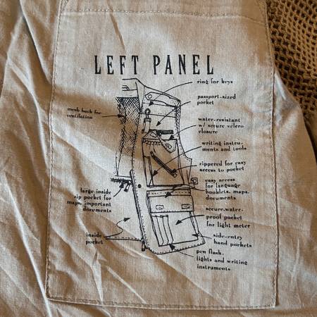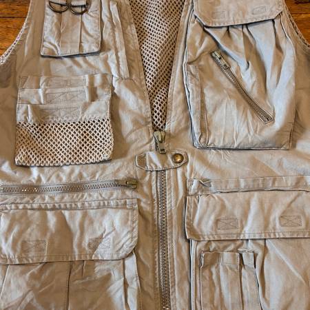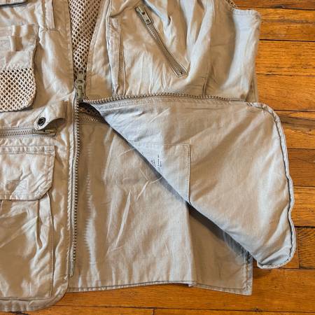 Excellent condition. Clean inside and out. No rips, tears, or stains. Pockets, zippers, and snaps are all in great shape. Includes a National Audobon Society pin on the right chest pocket.