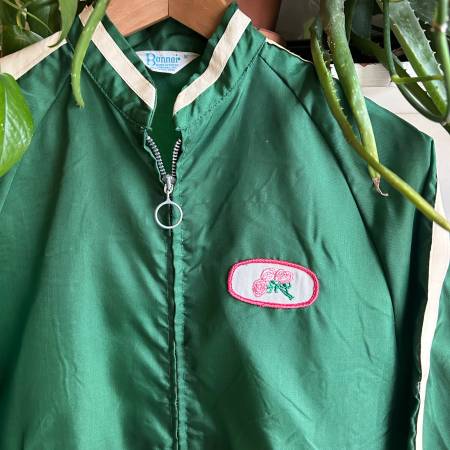BONNER MANUFACTURING ~ Vtg Windbreaker w Reflective Stripes ~ Roses Patch ~ Talon Zipper