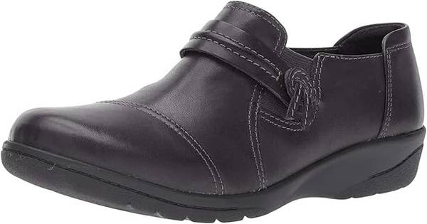 Clarks Women's Cheyn Madi Ortholite Slip On Loafer Shoes - Dark Tan Leather, Size 7M / 9.5M - Black Smooth Leather, 8 M