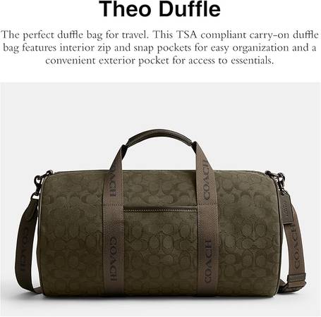 The COACH Men's Theo Signature Jacquard Duffle Bag is a modern, sporty travel bag. It features a spacious interior, multifunction pockets.