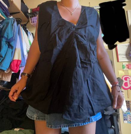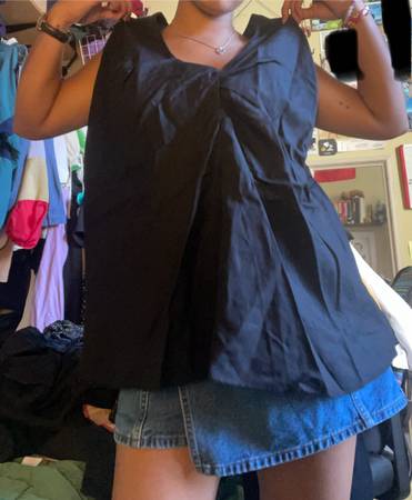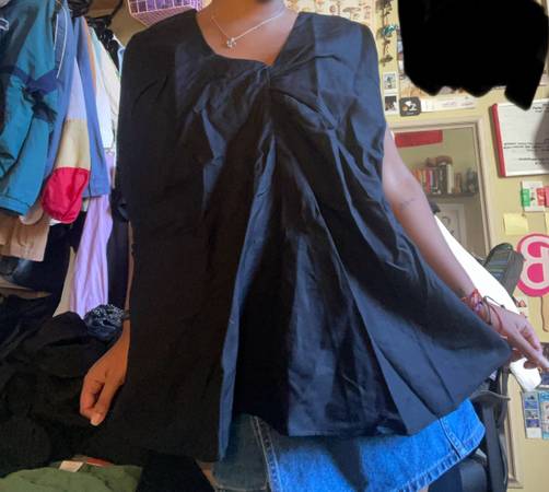 Chic black blouse with a V-neck design. Sleeveless and stylish. Ideal for versatile wear. Size 4, i’m an S and it a bit big on me, could fit an M or possibly an L. New, never worn, original price $120 with tags.