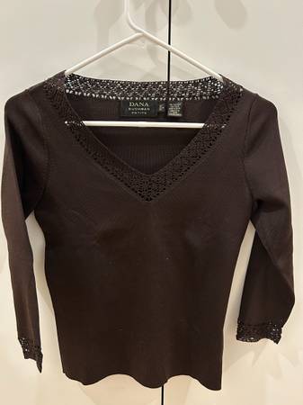 Never worn brown Dana Buchman silk blouse in petite