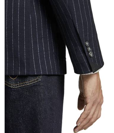 The must-have blazer is given an extra kick of style with a sharp pinstripe pattern in classic navy blue. Joseph Abboud creates modern menswear in fine fabrics to enhance your lifestyle and complete your look.