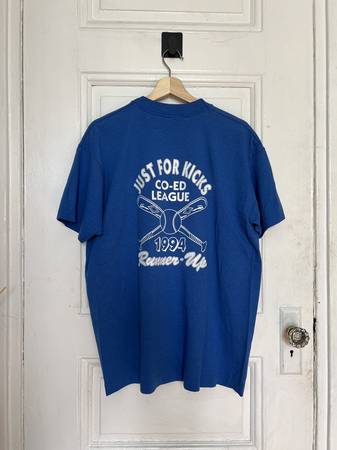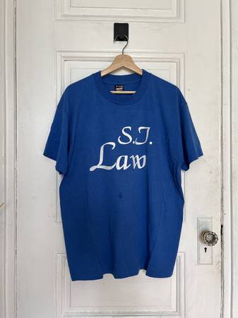 MEN’S T-SHIRTS: **No try-ons *** All are used/thrifted $15 - “S.J. Law / Just for Kicks Co-Ed League 1994 Runner Up” in Blue, Size XL $7 - Fruit of the Loom Tee (w/ patch pocket) in Khaki, Size XL...