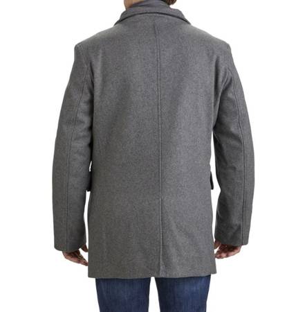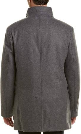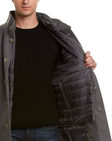 Classic wool blend topper with removable quilted jacket. Imported.