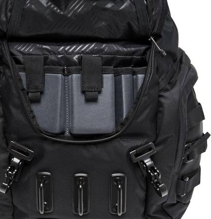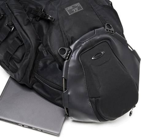 Outfitted with serious hardware and versatile storage options, the Kitchen Sink Backpack is a complete package with heavy–duty appeal. Whether taking a day trip or extended excursion, specialized pockets inside and out organize items while abrasion–resistant fabric keeps them safe, including shoes and most 17" laptops. A padded back and adjustable mesh–lined shoulder straps keep you comfortable and cool when hauling over long distances. Equipped with a hard media–player compartment and reinforced clip and zip closures, the Kitchen Sink Backpack blends toughness, style and diverse function ideal for the unpredictable day. Bottom shoe compartment provides spacious storage.