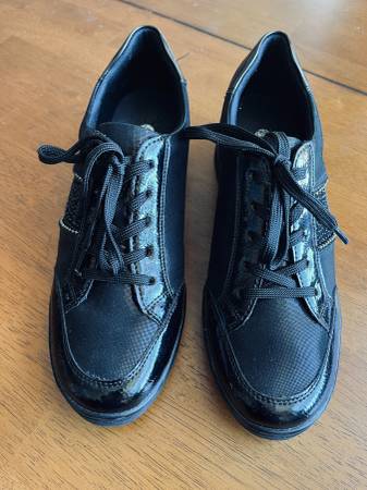 Remonte Soft Wonen's Lace Up Shoes Faux Leather/textile Bits Embroidered Black