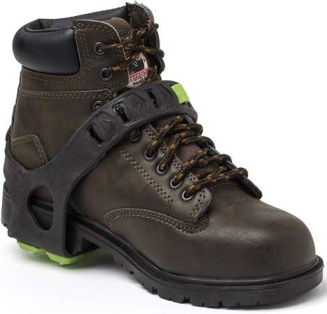Stabilicers heel traction Cleats for job safety on snow and ice keep the forefoot cleat-free for operating vehicles, climbing ladders, and transitioning indoors. Ideal for truck drivers, package delivery personnel, maintenance and construction workers, and anyone in constant transition from a car or truck to an icy road. Each traction device features four heat-treated steel cleats at the heel that bite into ice and snow, preventing slips and falls on the road or at the job site. The Stabilicers heel traction Cleats for job safety on snow and ice feature an easy on/easy off Adjustable strap and tension system that fits securely over shoes and boots; One Size fits most. Cleats are replaceable (replacements sold separately). Sold as a pair. Made in the USA.