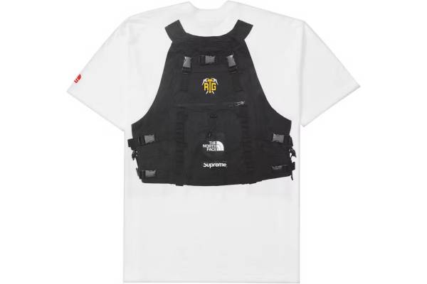 This Supreme The North Face T-shirt was released as a part of the two brands' first collaboration of 2020 which was centered around the resurrection of the RTG line. The t-shirt features a graphic design of the Supreme The North Face Vest that dropped as an accessory to the heavier jacket from the collection.