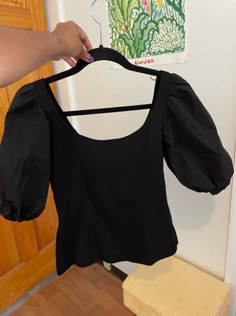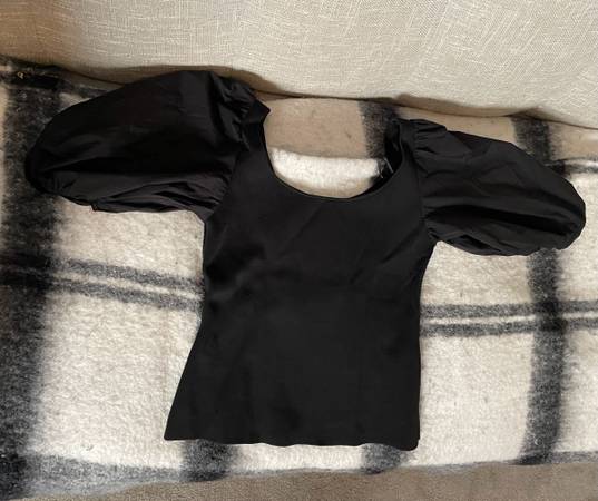 Chic black blouse with puff sleeves. Perfect for versatile styling. Theory, original price $345, size S, new without tags, never been worn. Selling a lot of clothes since im moving to another...