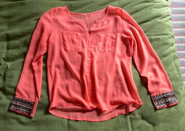 Add a pop of color to your outfit with this vibrant pink blouse. Featuring stylish patterned cuffs, it's perfect for both casual and formal occasions. Size S (could maybe fit an M), very good condition.