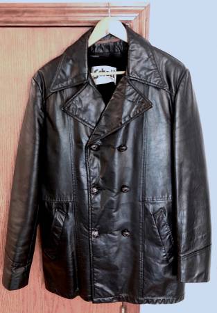 Vintage 1970s Black Leather Jacket Pea Coat - clothing & accessories...
