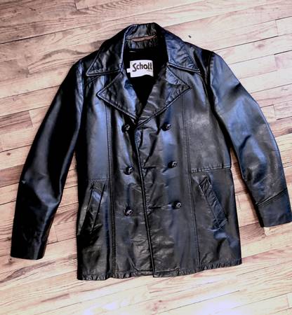 Great vintage black leather pea coat in very good condition, complete with zip-out liner. Just the right amount of gently broken in. Men's Medium (says 39 but fits like a 40) Note one small light...