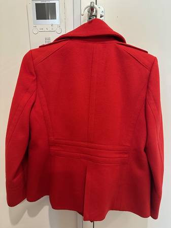 This coat is made from 100% fine wool that is thick, heavy, and very warm. It has very nice tailoring. There is no blemish or tear and worn only a few times. The size is Petite Medium. Sadly, it no...