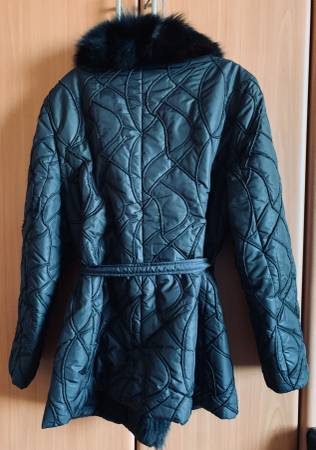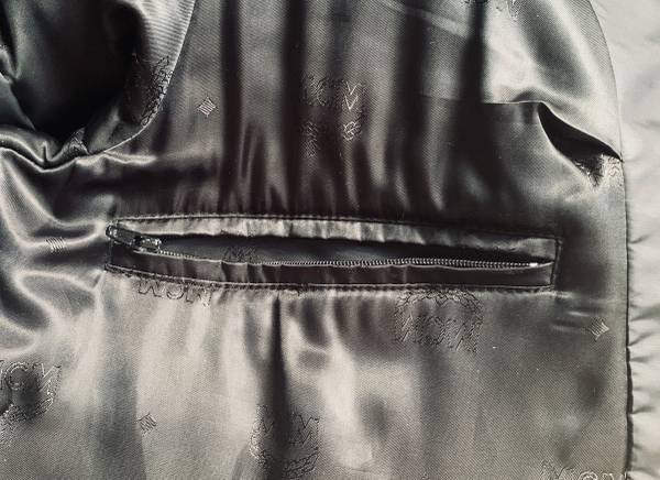 The MCM Women's stylish quilted Coat/Jacket in black featuring a unique real blue fox fur collar. This mid-length jacket with long sleeves and a classic fit is perfect for adding a touch of luxury to any outfit. The jacket's hook & eye closure and polyester lining offer both functionality and comfort, making it a versatile piece for the fashion-forward woman's wardrobe.