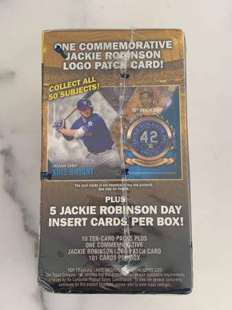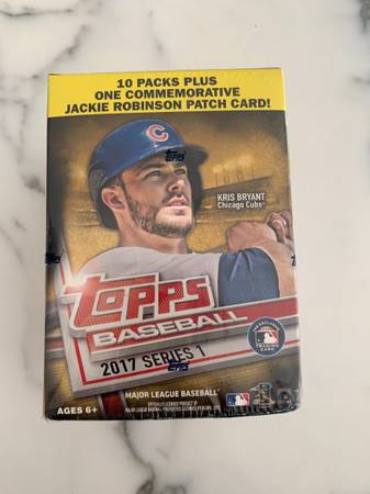 Wowzzer!! Hot Of the Presses! This Product every year is ALWAYS A HOME RUN! We are Proud to offer this Super Hot 2017 Topps Series 1 Baseball EXCLUSIVE Factory Sealed Retail Box! This EXCLUSIVE Factory Sealed Box includes 10 Packs & 10 Cards Per Pack! PLUS this EXCLUSIVE Factory Sealed Box includes a VERY SPECIAL Commemorative Jackie Robinson PATCH CARD that can ONLY be found in this Box! There are 50 different Patch Cards & Rare Autograph Versions! Some of these EXCLUSIVE Cards sell for up to $40 Each & Autograph Versions can sell for Hundreds of Dollars! Look for Jackie Robinson Patch Cards of Mike Trout,Buster Posey,Kris Bryant,Bryce Harper, Corey Seager & More!