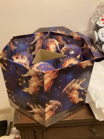 This is 2 boxes of ornaments for the holidays, one box has 11 ornaments, the other about 50. Both are in excellent condition with there own boxes