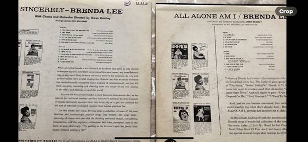2 Vintage Collectible Brenda Lee Vinyl LP Albums ONLY $5.00! Ave U - Mill Basin Brooklyn Local Pickup Only
