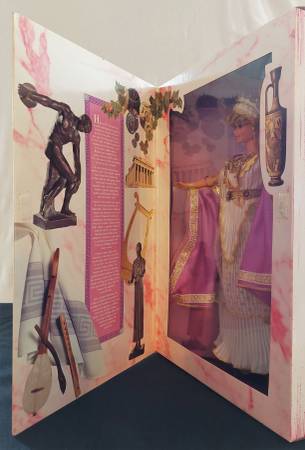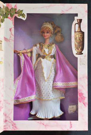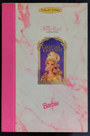 From the Great Eras Special Collection, Grecian Goddess Barbie is the goddess Athena, wearing a white pleated tunic, decorated with golden laurel leaves, and cinched at the waist. The box is in mint...