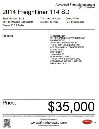 2014 Freightliner 114SD diesel for sale - Branchville, NJ - craigslist