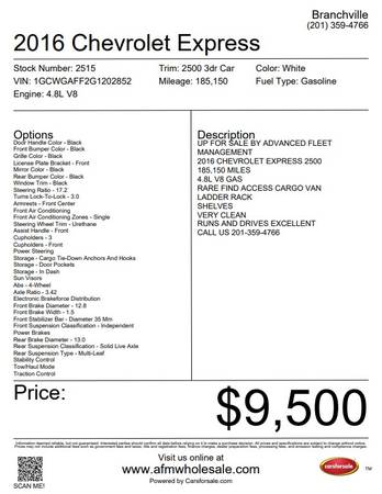 2016 CHEVROLET EXPRESS 2500 ACCESS CARGO VAN - stk#2515