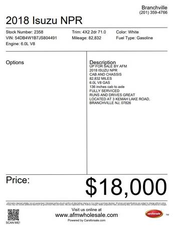 2018 ISUZU NPR BOBTAIL TRUCK - stk# 2358