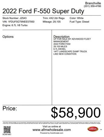 2022 FORD F550 14FT LANDSCAPE DUMP TRUCK - stk# J2543 29,105 MILES 6.7L DIESEL LIKE NEW CONDITION UP FOR SALE BY ADVANCED FLEET MANAGEMENT LOCATED AT 3 KEMAH LAKE ROAD, BRANCHVILLE, NEW JERSEY 07826...