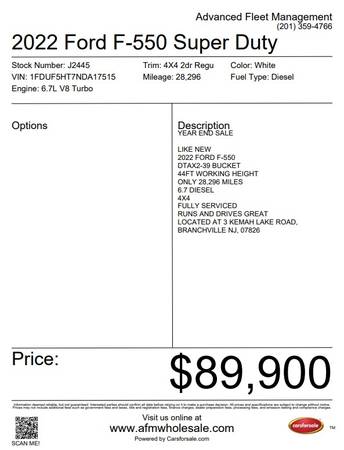 2022 FORD F-550 44FT BUCKET TRUCK 4X4 - stk J2445